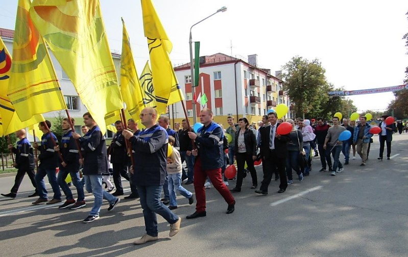 Первым из запланированных мероприятий было праздничное шествие представителей трудовых коллективов, организации и учреждений, в котором участвовало ПУ «Речицагаз».