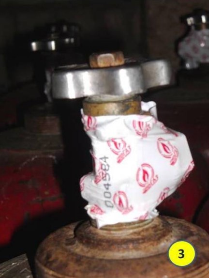 Реконструкция ГНС также позволила решить ещё один повседневный вопрос, касающийся потребителей СУГ в баллонах. Предприятием была смонтирована полуавтоматическая установка (FAS 23169) для термоусаживания контрольной плёнки защитно-пломбирующего устройства, устанавливаемого на заглушку вентилей наполненных баллонов, так называемая пломба (рис.2). Пломба имеет логотип нашего предприятия и что очень важно - сквозную нумерацию, т е. каждый баллон опломбируется пломбой с индивидуальным, не повторяющимся номером (рис.3). Опломбирование на Калинковичской ГНС баллонов позволяет исключить возможность несанкционированного отбора СУГ из баллонов при транспортировании его до потребителей и тем самым гарантировать реализацию заданного количества СУГ в баллоне. Одновременно с этим наличие номерной пломбы позволит также дисциплинировать потребителей газа, которые нарушали п.42.14 Правил пользования газом в быту - передавали баллон с СУГ другим лицам.