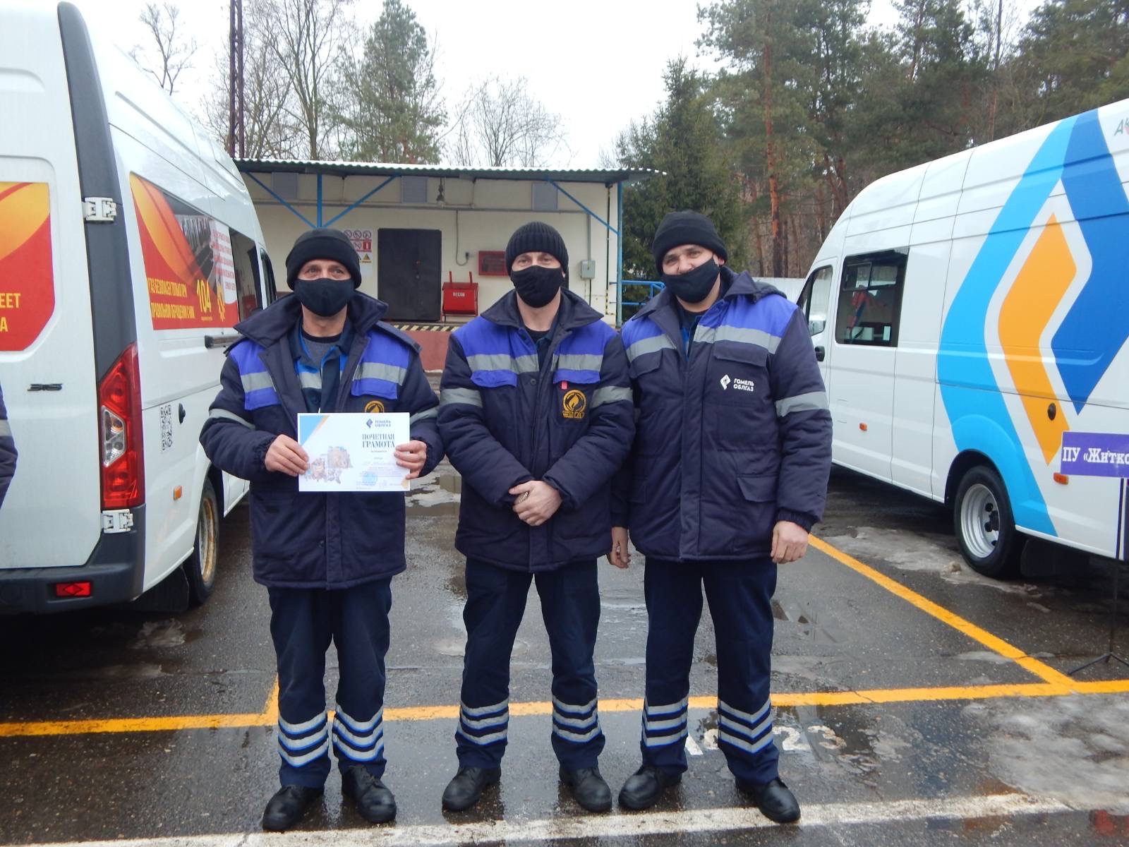 3 место - бригада ПУ "Житковичигаз" (мастер Сысов Алексей, слесари по обслуживанию и ремонту газоиспользующего оборудования Давидович Александр и Рубан Павел).