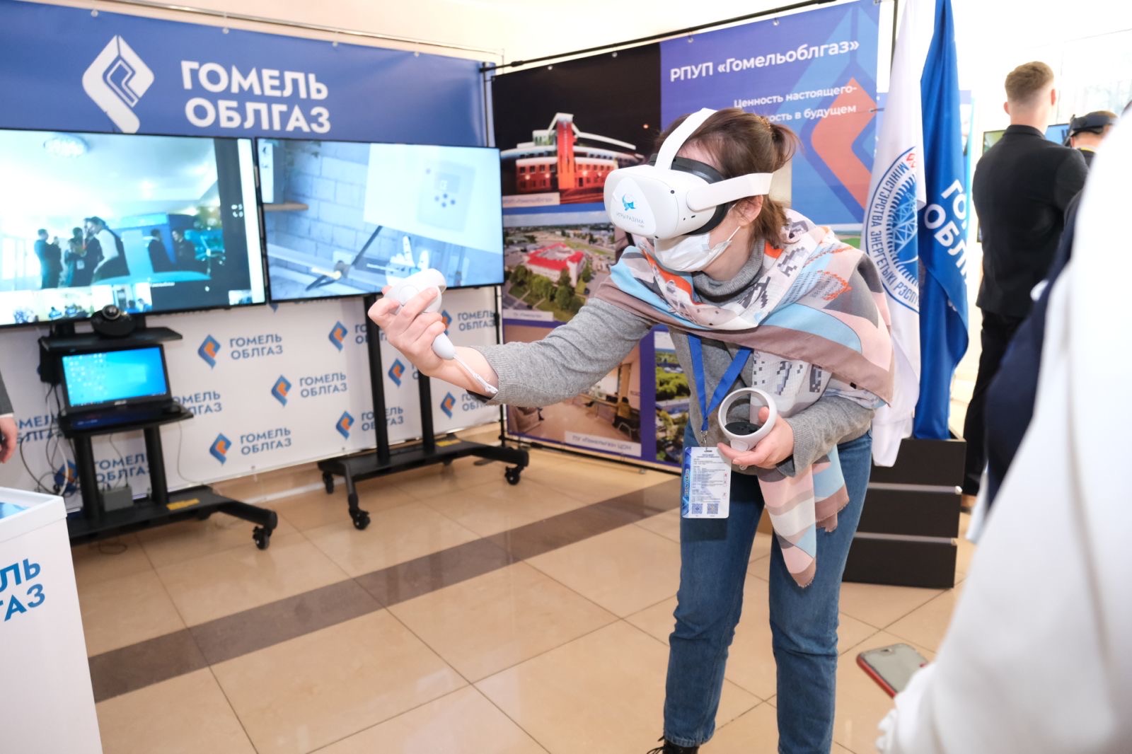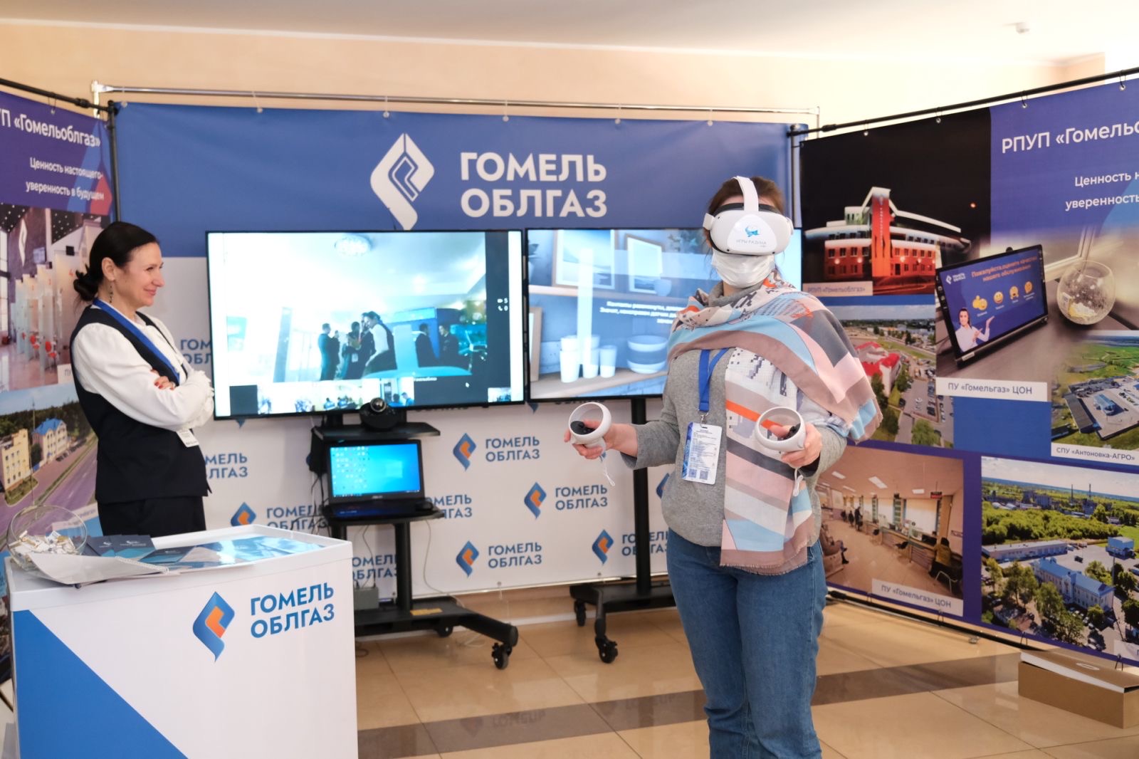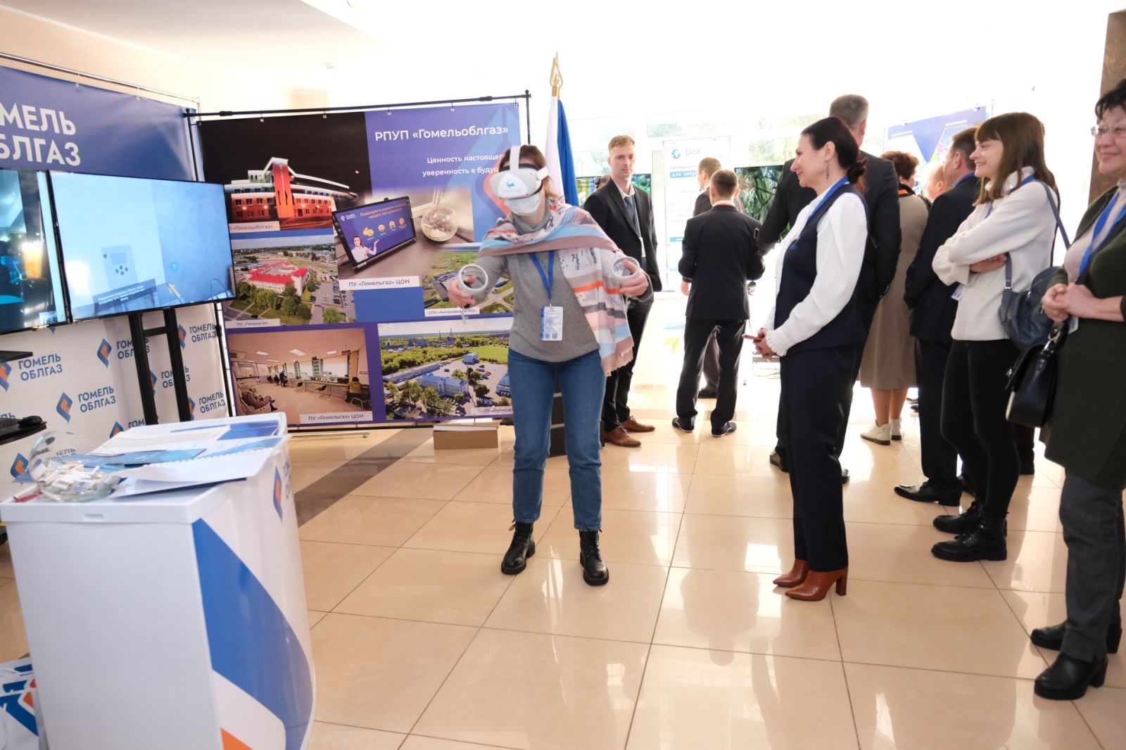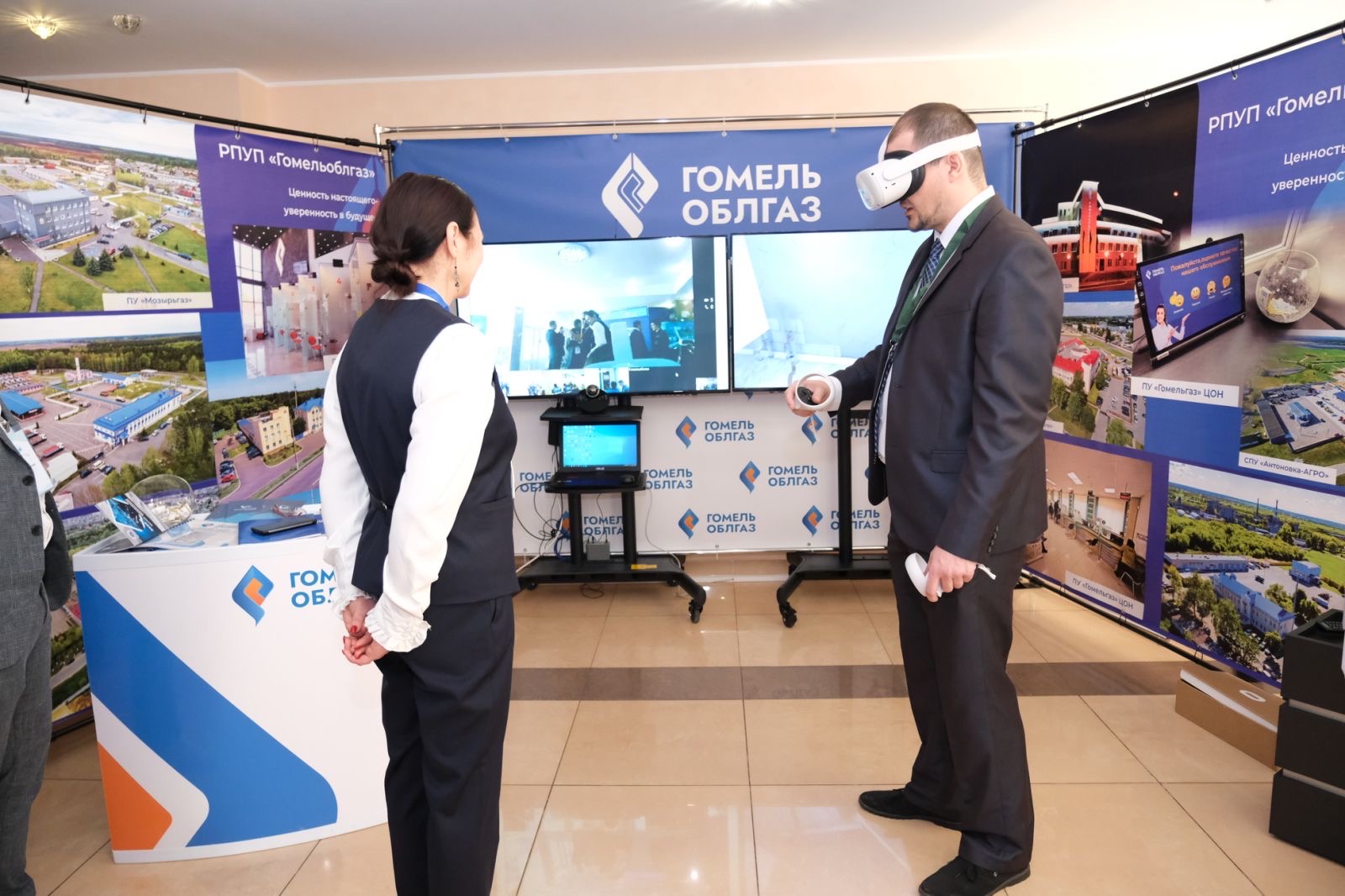 Представители РПУП "Гомельоблгаз" презентовали программно-аппаратный комплекс «Повышение уровня компетентности персонала по обслуживанию газоиспользующего оборудования», который состоит из комплекта гарнитуры виртуальной реальности (очки-шлем), планшета администратора, монитора телевизора и программного обеспечения «Повышение уровня компетенции персонала по обслуживанию газоиспользующего оборудования».