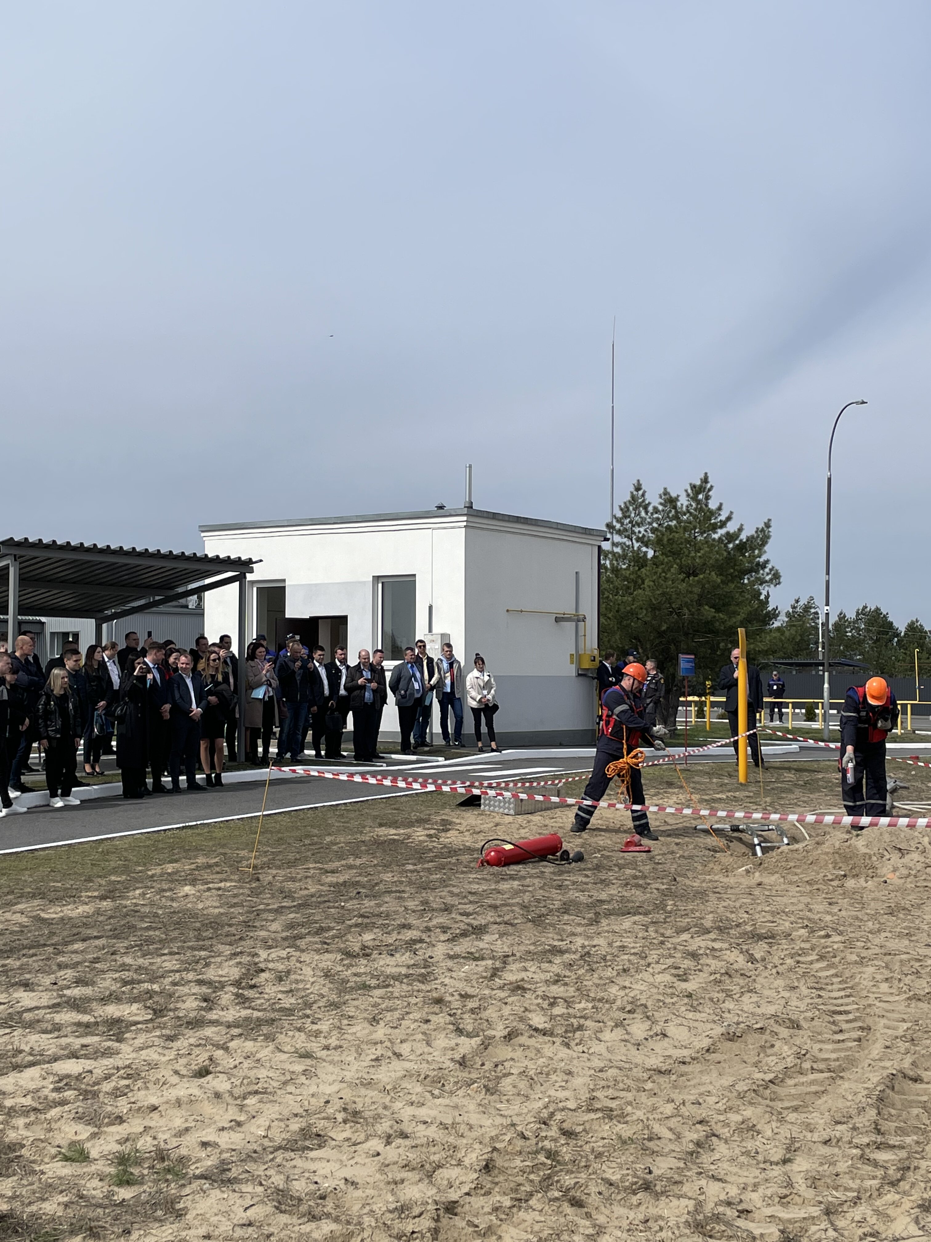 Перед началом заседания молодых работников ознакомили с учебно-тренировочным комплексом ПУ "Мозырьгаз", где аварийная бригада продемонстрировала отработку действий при обнаружении утечки газа на газопроводе и локализации возгорания.